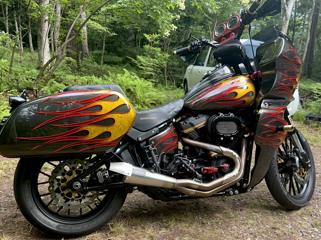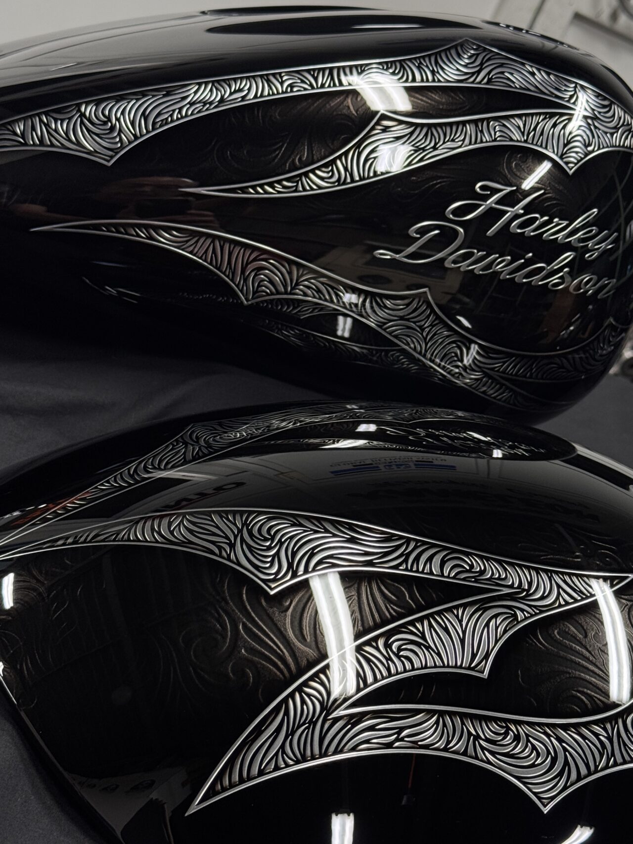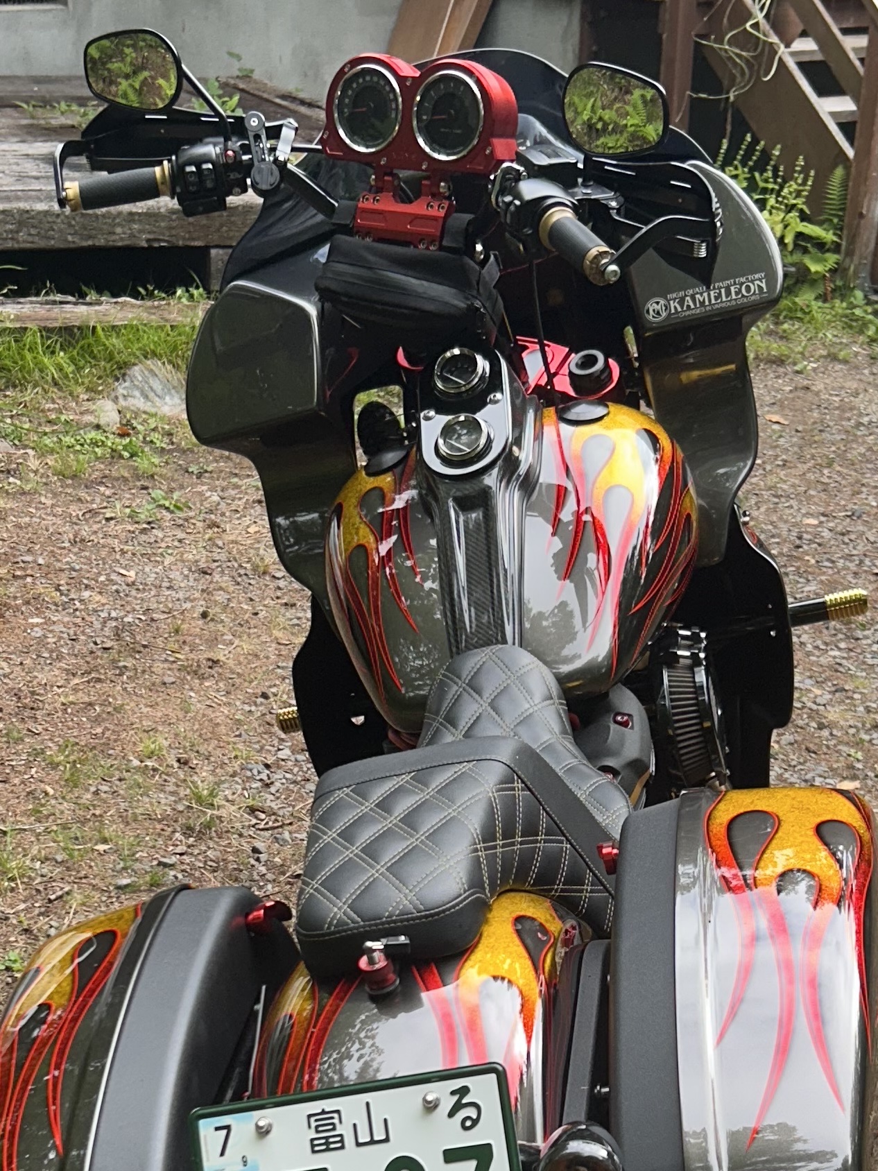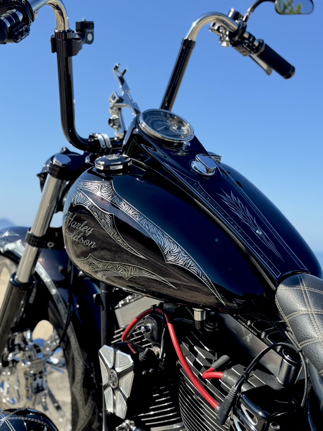 生命力を感じさせる植物をモチーフにした3Dペイントで全体をライン取りし、タンクはエポキシ樹脂により陰影を映し出す立体的なデザインとなっています。また、アルミ削り出しのように見えるハンドルバーも、3Dペイントによる表現です。