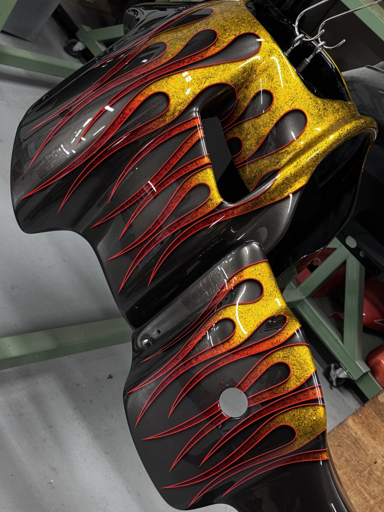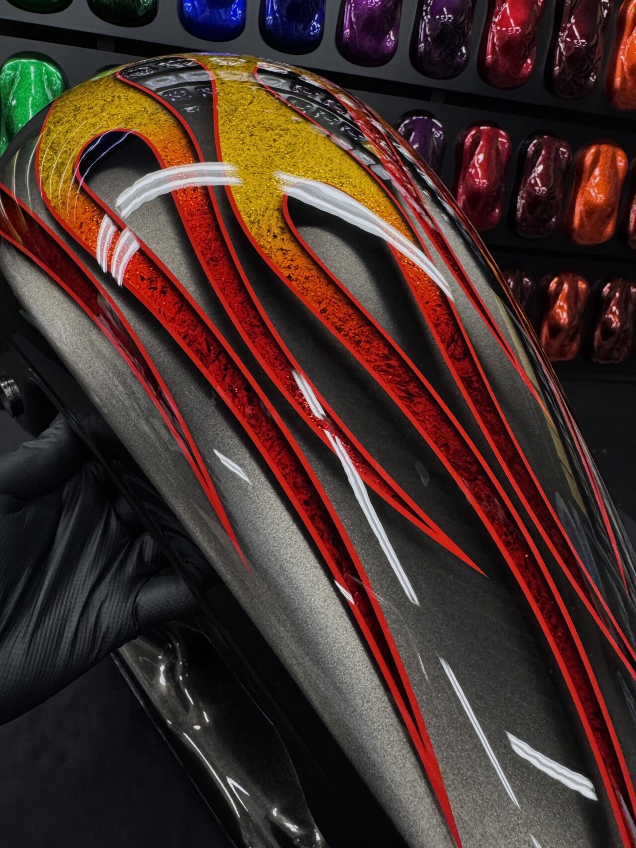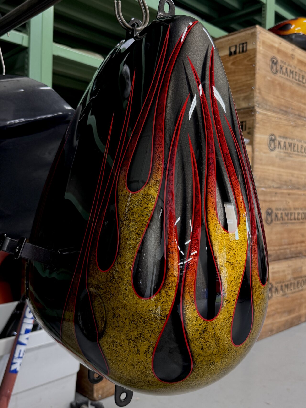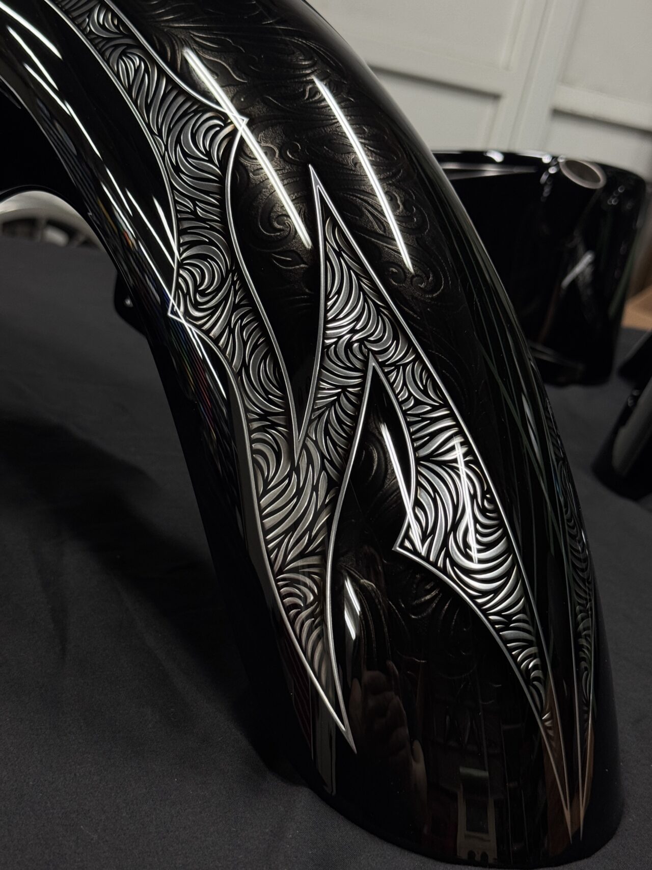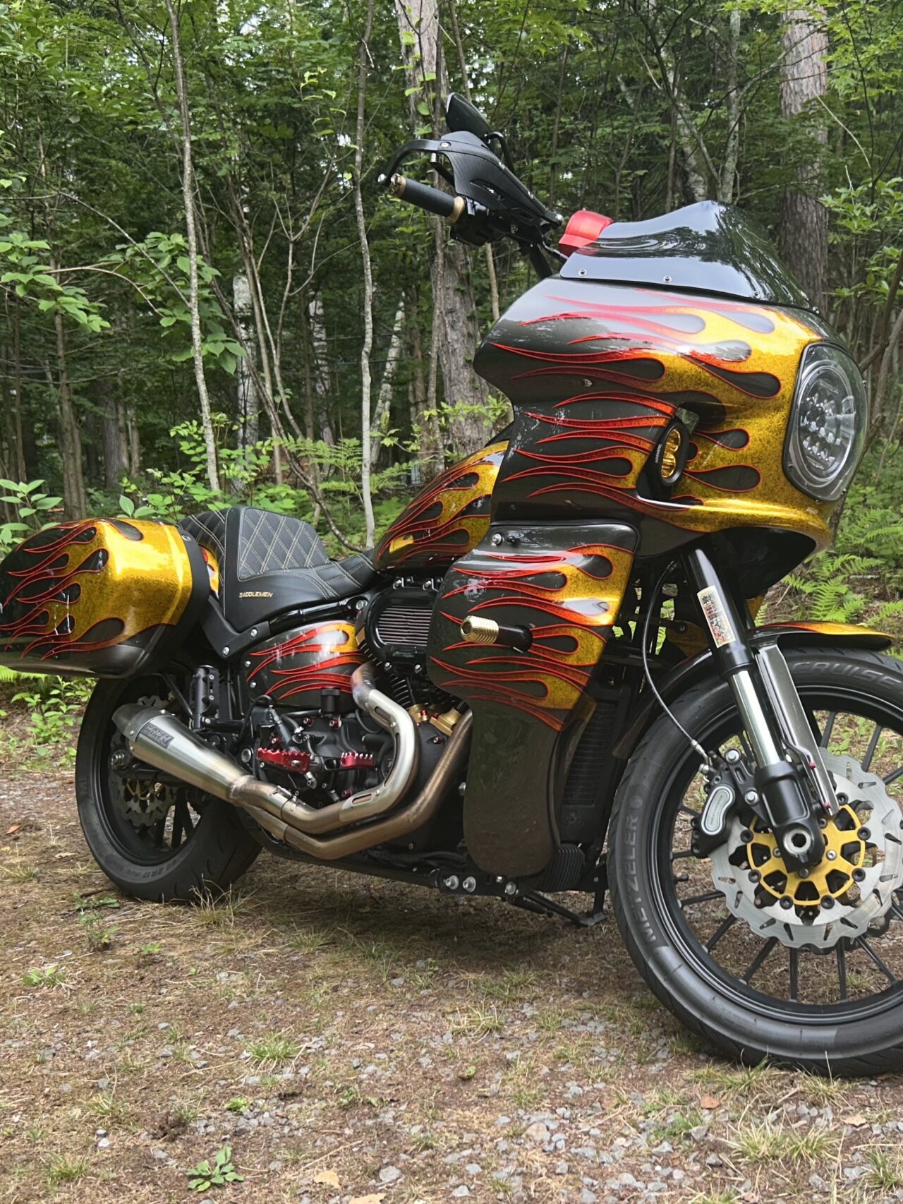 生命力を感じさせる植物をモチーフにした3Dペイントで全体をライン取りし、タンクはエポキシ樹脂により陰影を映し出す立体的なデザインとなっています。また、アルミ削り出しのように見えるハンドルバーも、3Dペイントによる表現です。
